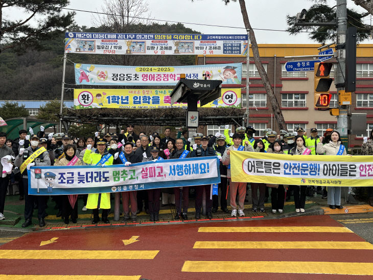 이번 캠페인에는 정읍경찰서장, 정읍시청 교통과, 재난 안전과, 정읍교육지원청, 동 초등학교장 및 모범운전자, 역전자율방범대 협력단체 68명이 참석하였으며, 정읍경찰서에서는 등교하는 학생들에게 어린이 연필 세트를 나눠 주며 보행의 3원칙 '보다, 서다, 걷다'의 일상화를 위한 홍보활동을 병행 전개했다.