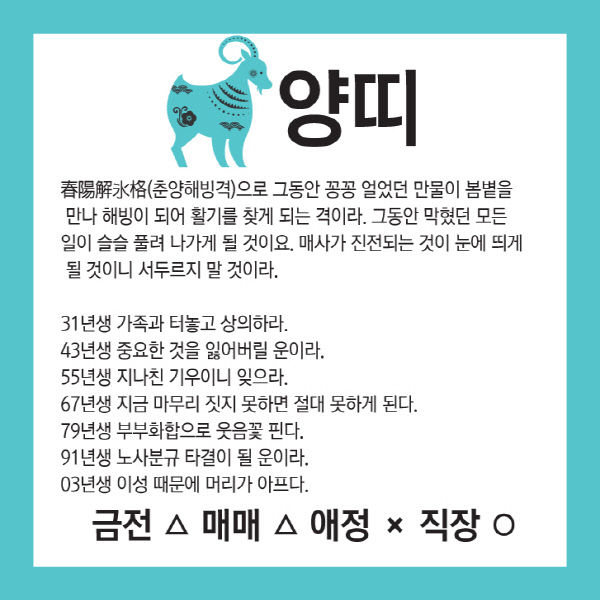 금전 △ 매매 △ 애정 ○ 직장 ×