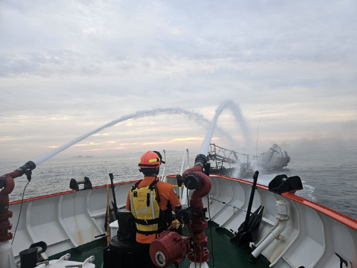 현장에 도착한 소방정대는 선박 내부에서 불꽃과 연기가 치솟고 있으며 진화 후에도 반복적으로 재발화하는 상황을 확인했고 바람과 파도 등의 해상 조건도 불리해 신속하고 정밀한 대응이 요구되는 상황이었다.